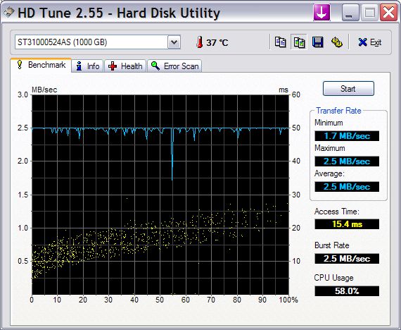 To sie dzieje w czasie zapisu danych na dysk. Gdy juz sie stanie to szybkośc na stale jest ograniczona do 2.4 MB/s, aż do nastepnego restartu. Bardzo wzrasta obciażenie procesora. W Windows XP nie ma zakładki "dysk" w monitorze zasobów, ale róznice mozna wyczuc na oko bez żadnych problemów.Tak się dzieje przez Eksplorator Windows czy np. podczas oglądania filmów? Masz włączone wszystkie optymalizacje dysku - wysoką wydajność w menedżerze urządzeń? Poza tym uruchom menedżer zadań -> Wydajnośc -> Monitor zasobów i zakładka dysk - tylko tam masz miarodajne wyniki pracy twojego dysku.