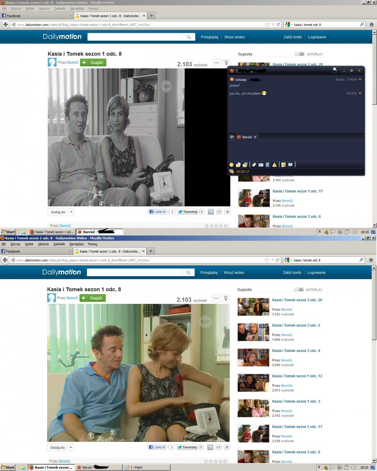 Witam, posiadam laptopa HP Pavilion dv6000, karta graficzna geforce go 7400 (sterownik z 2009.01.30- wyzej nie zainstaluje) . Podczas gdy wyskoczy np. okienko z aqq lub nawet gdy najade by podswietlic zegar obraz filmu lub nawet niektorych aplikacji zweza sie i traci kolory. Dodam, ze w wydajnosci komputera wszelkie aero peek itd jest wylaczone. Windows 7. Ponizej zamieszczam screenshoty na ktorych widac dany problem.