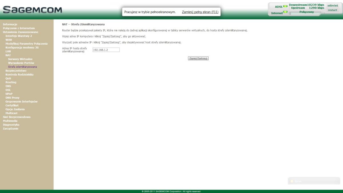 Często korzystam z domowego serwera WWW(XAMPP ...) no i niestety, odkąd Netgear'a zastąpiłem Sagemem - nie potrafię poradzić sobie, ani by ustawić serwer DMZ, ani by ustawić odpowiednio porty. Jestem tak jak by ... blokowany przez firewall routera, którego zwyczajnie ... nie włączyłem. Gdy włączę - pada sieć.